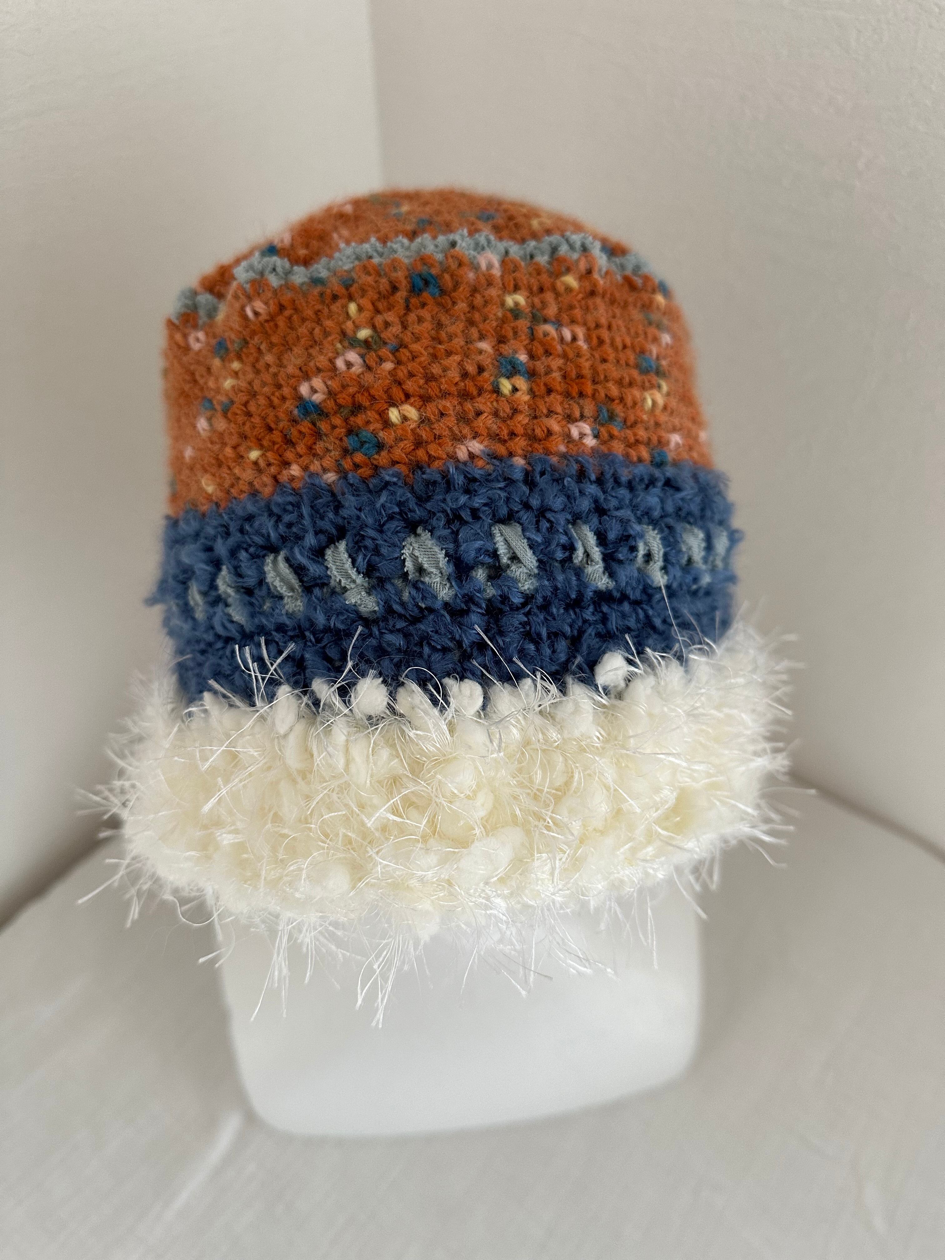モコモコの縁とアクセントでデニム調リボンが編み込まれた可愛い