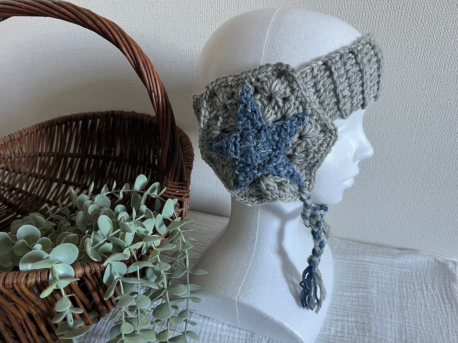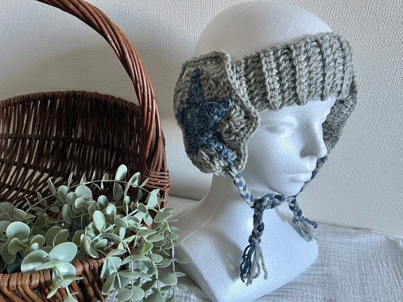 直径20cm/バンダナ縦幅6cm/耳当て直径14cm/紐の長さ23cm